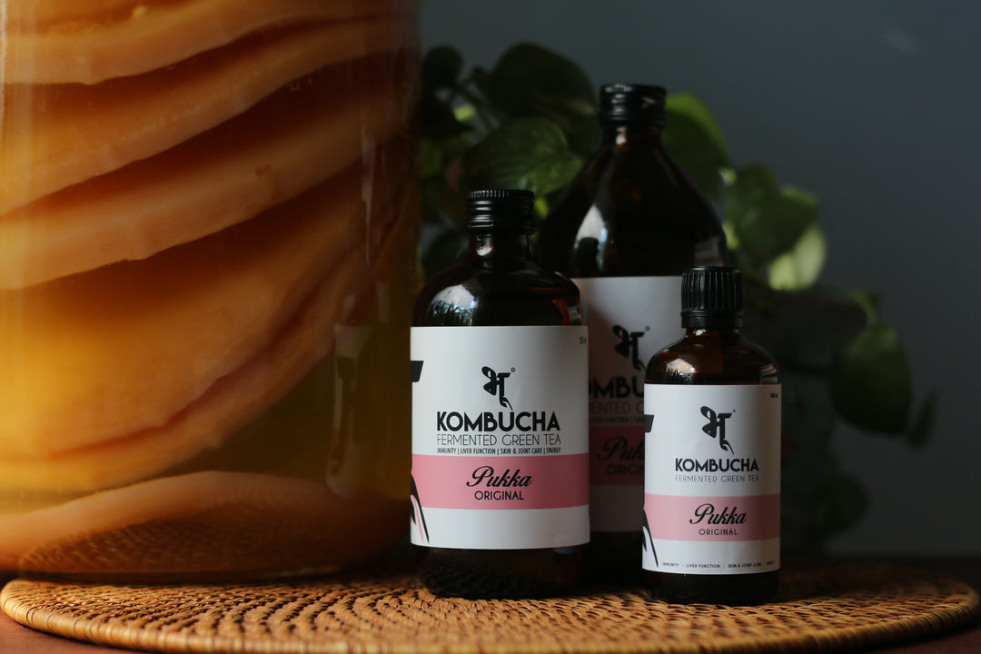 Brewed from organic green tea, Bhu Kombucha is fermented in small batches for 10+ days, and then infused with fresh, 100% real fruits, vegetables & botanicals.