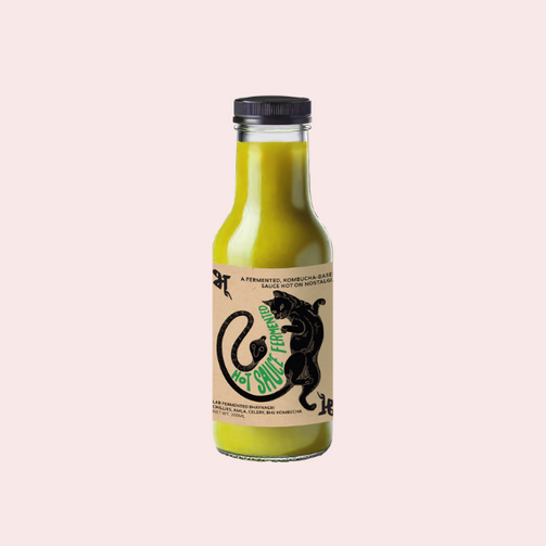 Process: Made with lacto-fermented chillies, and our OG Bhu Pukka, here is a hot sauce that sees all of us chatpata folk. Layered with fruit and spices, inspired by the best of North India Imli chutney, Pulse candy & Aam ka achaar, crafted with Chef Charu, the creative mind behind Avayava Dining, and long-time Bhu collaborator.