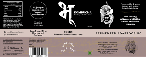 Meet Focus - India's 1st adaptogenic kombucha made with Lion's Mane, a nootropic mushroom grown in India by Shroomery. This magical ingredient is known to boost focus, memory and concentration!