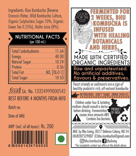 Children under four & pregnant or lactating mothers should consult a doctor before drinking. Contains live bacteria. Fermentation causes trace amounts of ABV.